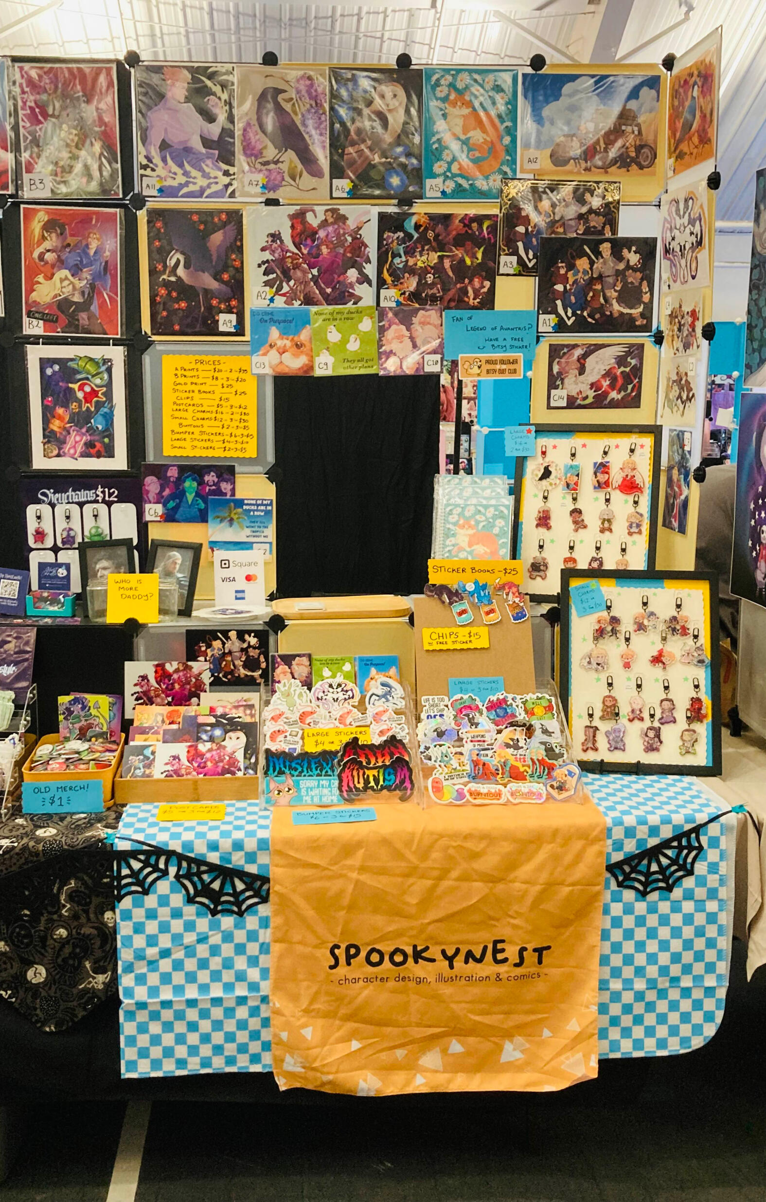 Welcome to my events page! I have been tabling at event and conventions since 2016 giving my 10 years of experience under my belt of running my own small business on the side. Here you can find photos of my table displays, product and future event updates.A large sum of my products are paper base; stickers & prints. I also sell acrylic charms, sticker books, commissions.